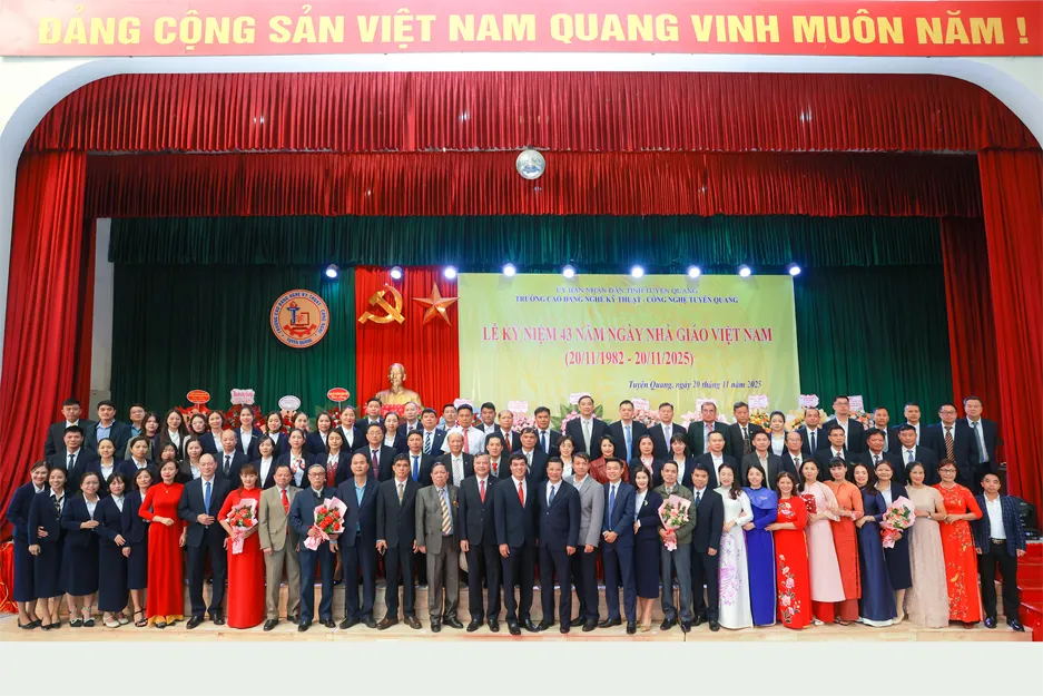 Sáng ngày 20/11/2025, Trường Cao đẳng Nghề Kỹ thuật – Công nghệ Tuyên Quang trang trọng tổ chức Lễ kỷ niệm 43 năm ngày Nhà giáo Việt Nam (20/11/1982 – 20/11/2025).