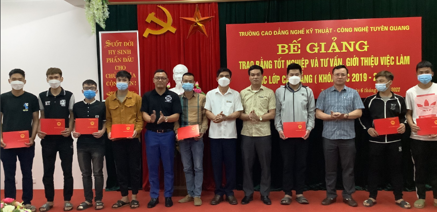 Ngày 06/5/2022, Trường Cao đẳng nghề Kỹ thuật – Công nghệ Tuyên Quang tổ chức Bế giảng, trao bằng tốt nghiệp và Tư vấn giới thiệu việc làm cho 66 sinh viên tốt nghiệp các lớp Cao đẳng K16, ngành Công nghệ ô tô và Điện Công nghiệp, khóa học 2019-2022.