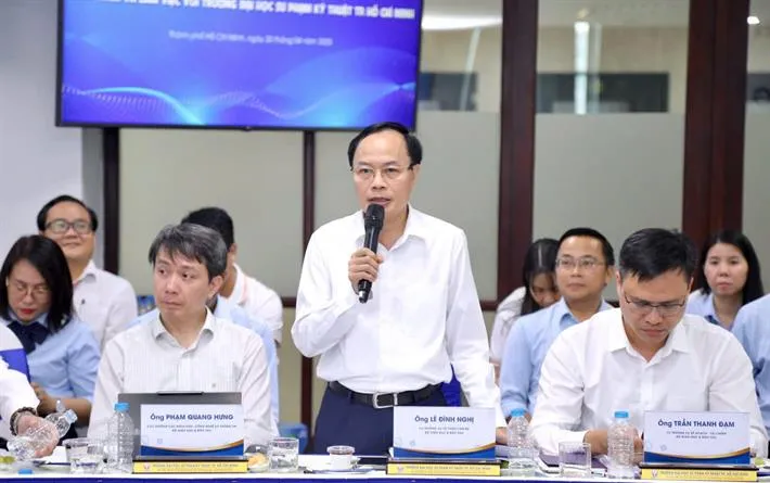 PGS.TS Lê Hiếu Giang, Hiệu trưởng Trường ĐHSPKT TP.HCM, phát biểu tại buổi làm việc
