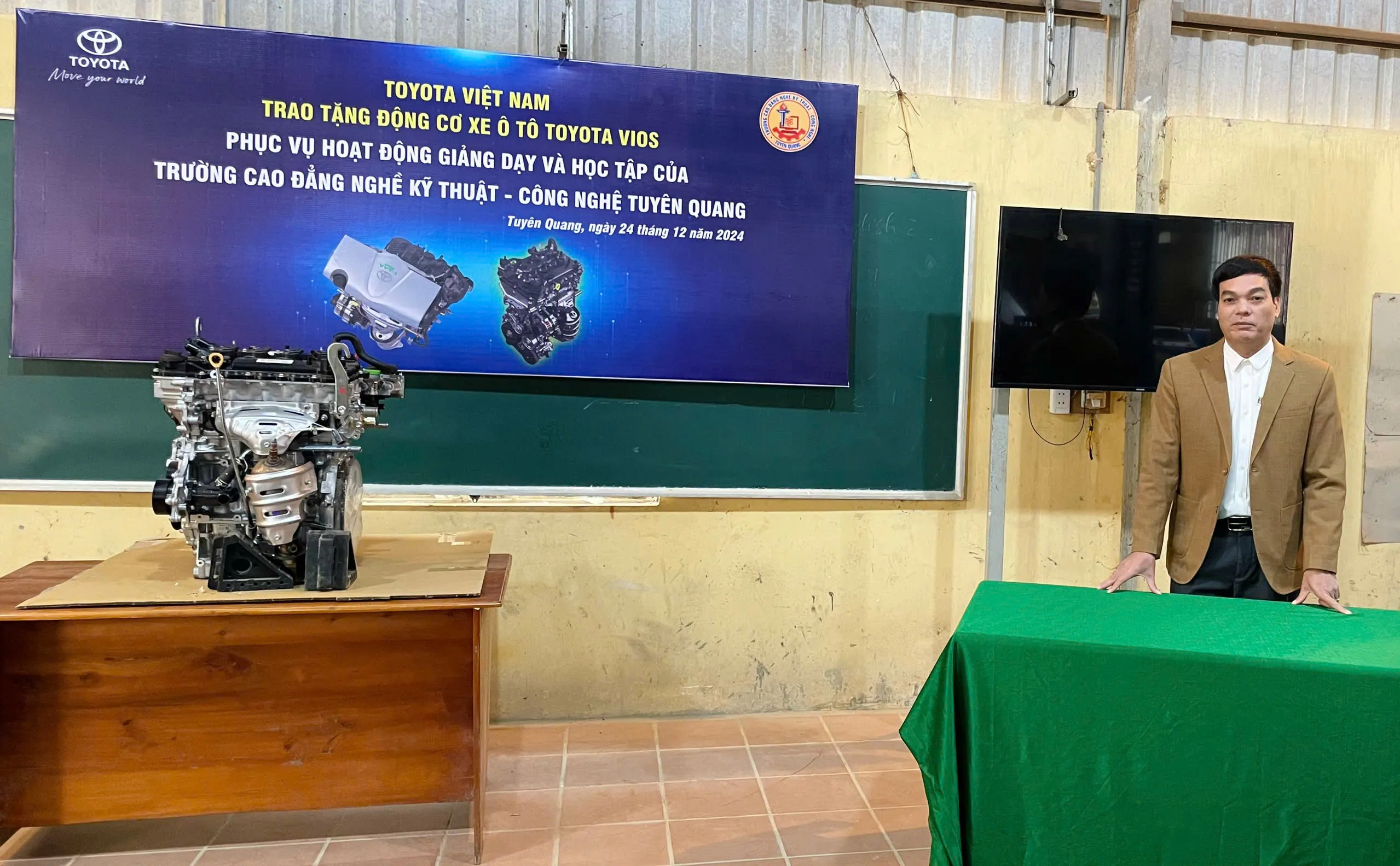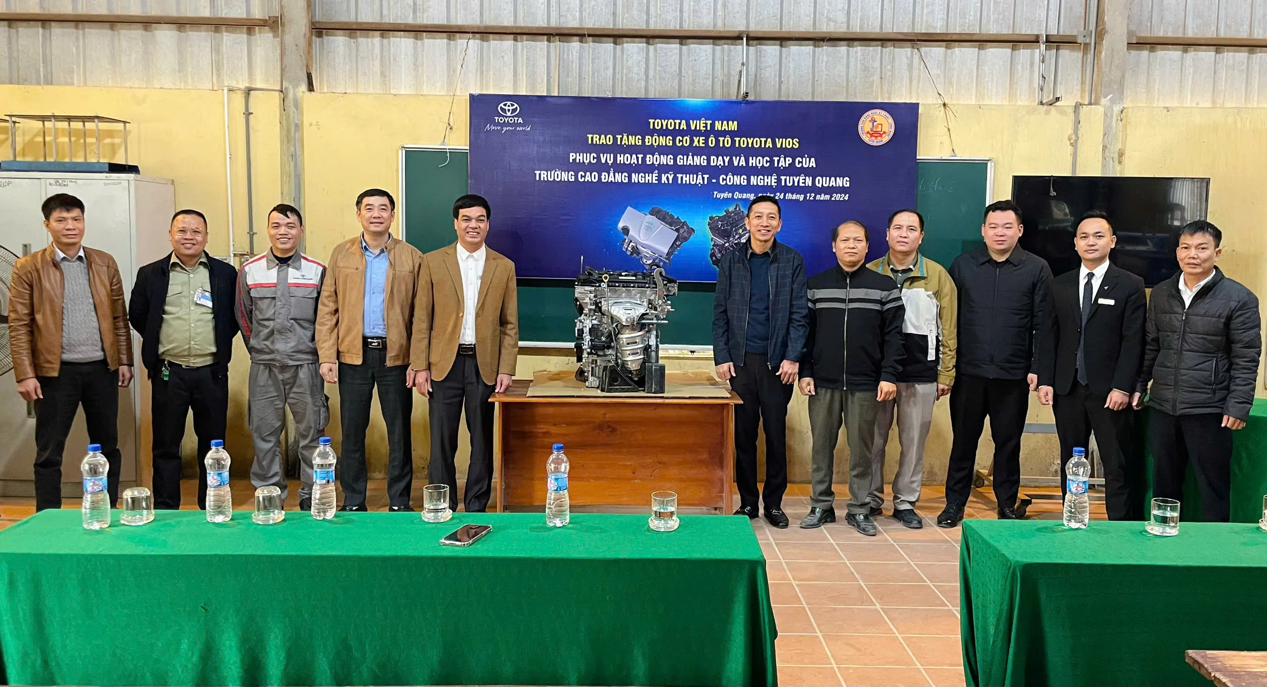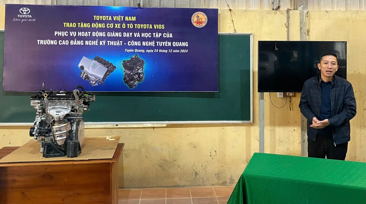 Thực hiện chương trình đóng góp xã hội của Toyota Việt Nam trong lĩnh vực đào tạo nguồn nhân lực ngành Công nghệ ô tô, với mục tiêu mang tới điều kiện học tập và thực hành tốt nhất cho học viên, sinh viên, ngày 24/12/2024, Công ty ô tô Toyota Việt Nam đã trao tặng Trường Cao đẳng nghề Kỹ thuật – Công nghệ Tuyên Quang 01 động cơ Động cơ ô tô Vios.