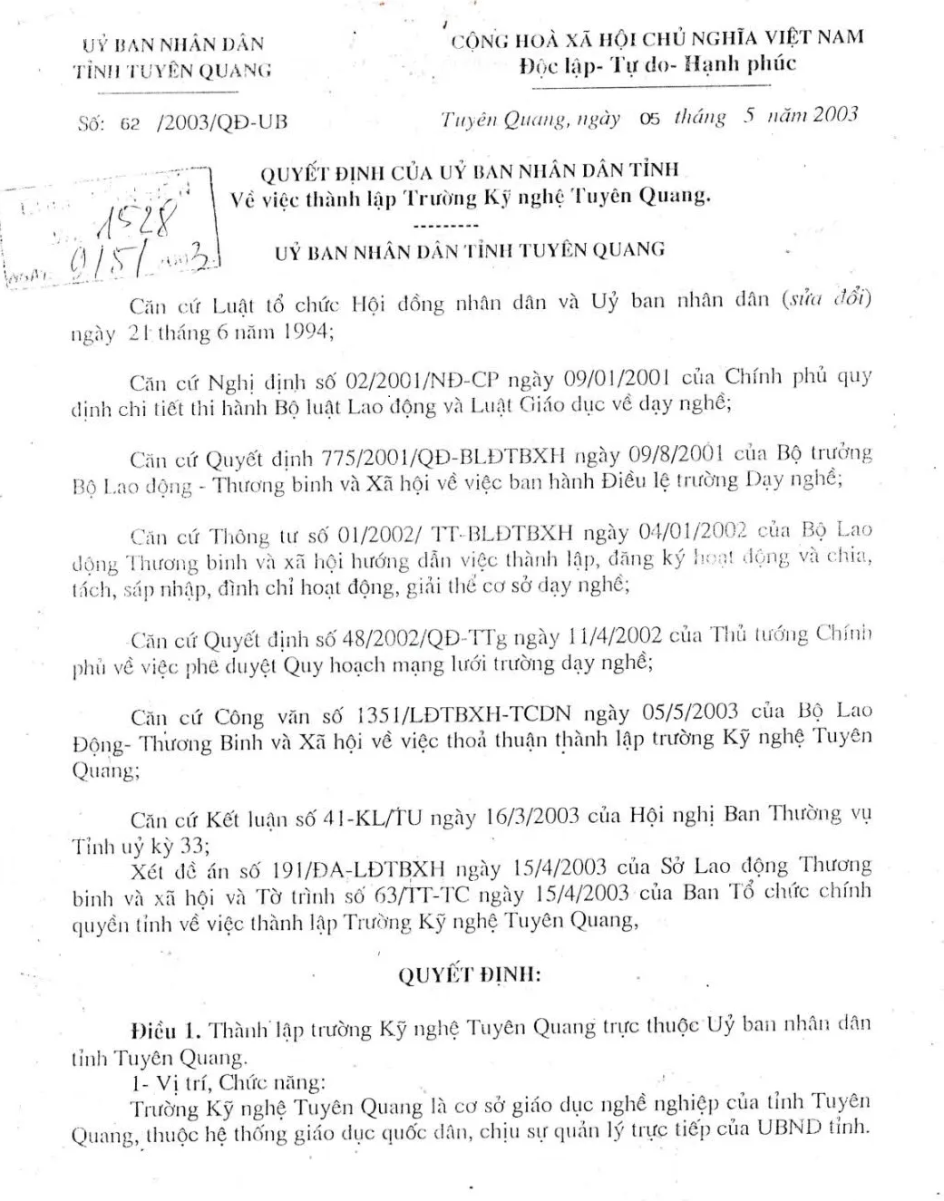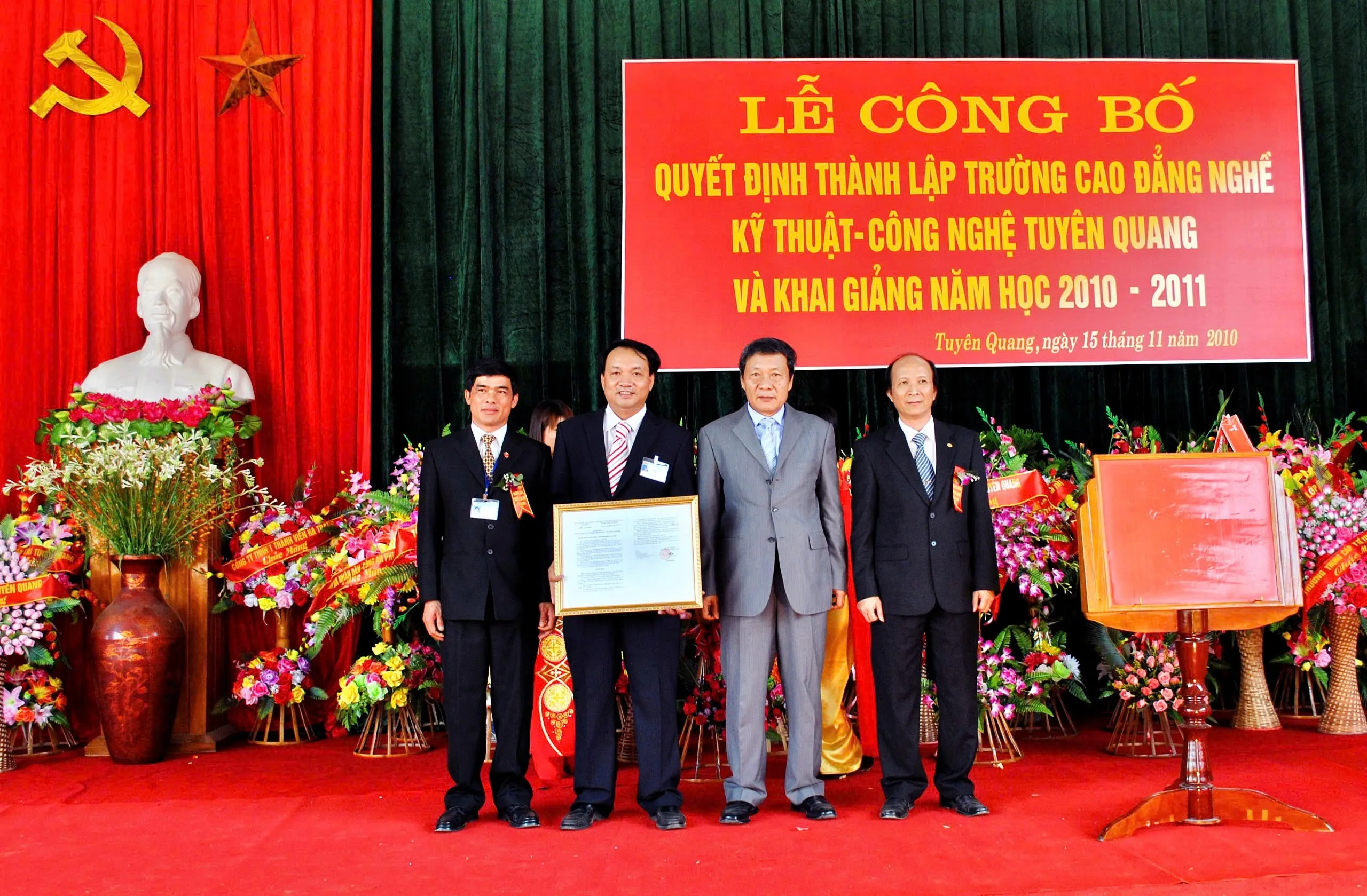 Lễ công bố Quyết định sáp nhập trường Cao đẳng Kỹ thuật và Công nghệ tỉnh Hà Giang vào trường Cao đẳng nghề Kỹ thuật - Công nghệ Tuyên Quang và đổi tên thành Trường Cao đẳng Tuyên Quang
