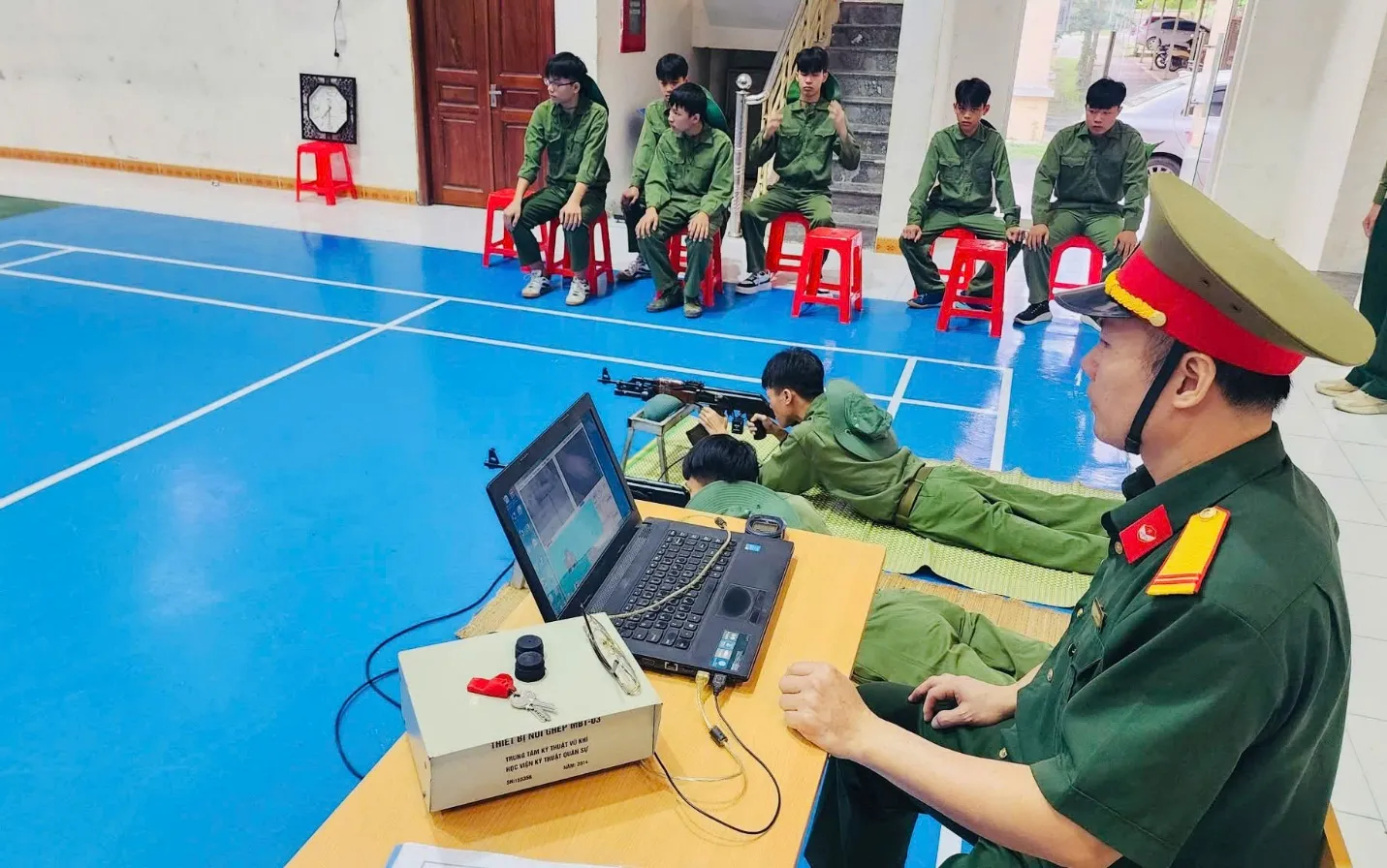 Thầy Ma Doãn Hưng, giảng viên khoa Khoa học cơ bản với bài giảng “Tư thế, động tác nằm bắn, thôi bắn súng tiểu liên AK”