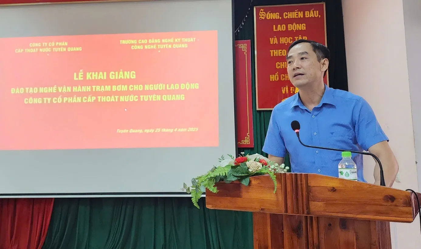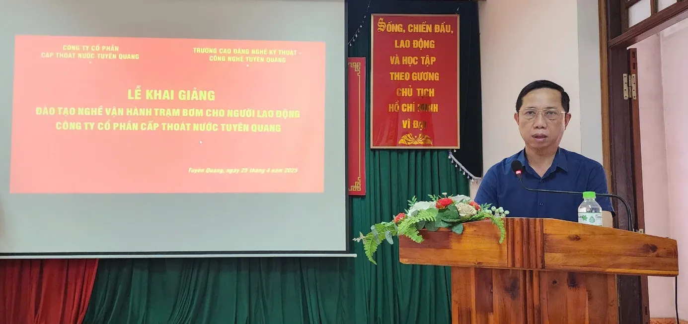 Sáng ngày 25/4/2025, Trường Cao đẳng nghề Kỹ thuật - Công nghệ Tuyên Quang đã tổ chức lễ khai giảng lớp đào tạo "Vận hành trạm bơm nước" theo đơn đặt hàng của Công ty Cổ phần Cấp thoát nước Tuyên Quang.