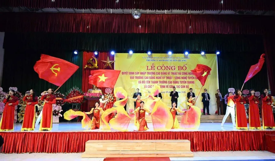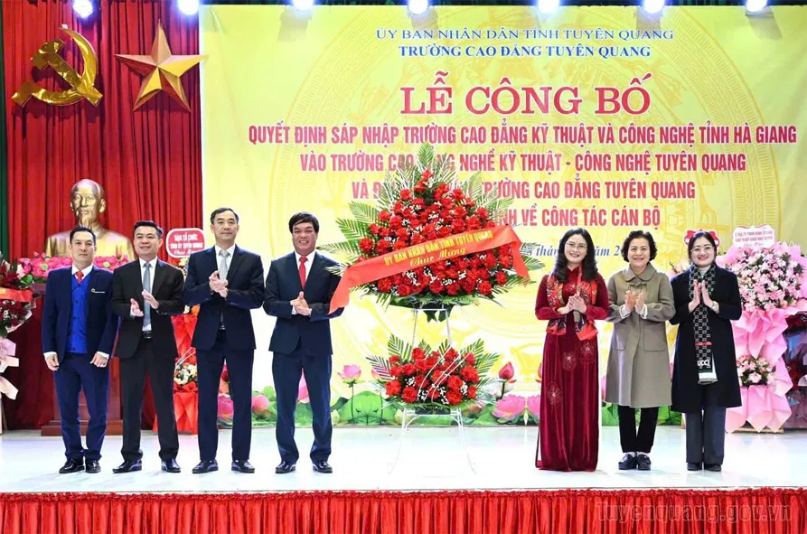 Sáp nhập cơ sở giáo dục nghề nghiệp: Lễ công bố quyết định sáp nhập trường Cao đẳng Kỹ thuật và Công nghệ tỉnh Hà Giang vào trường Cao đẳng nghề Kỹ thuật – Công nghệ Tuyên Quang và đổi tên thành Trường Cao đẳng Tuyên Quang; công bố các quyết định về công tác cán bộ.