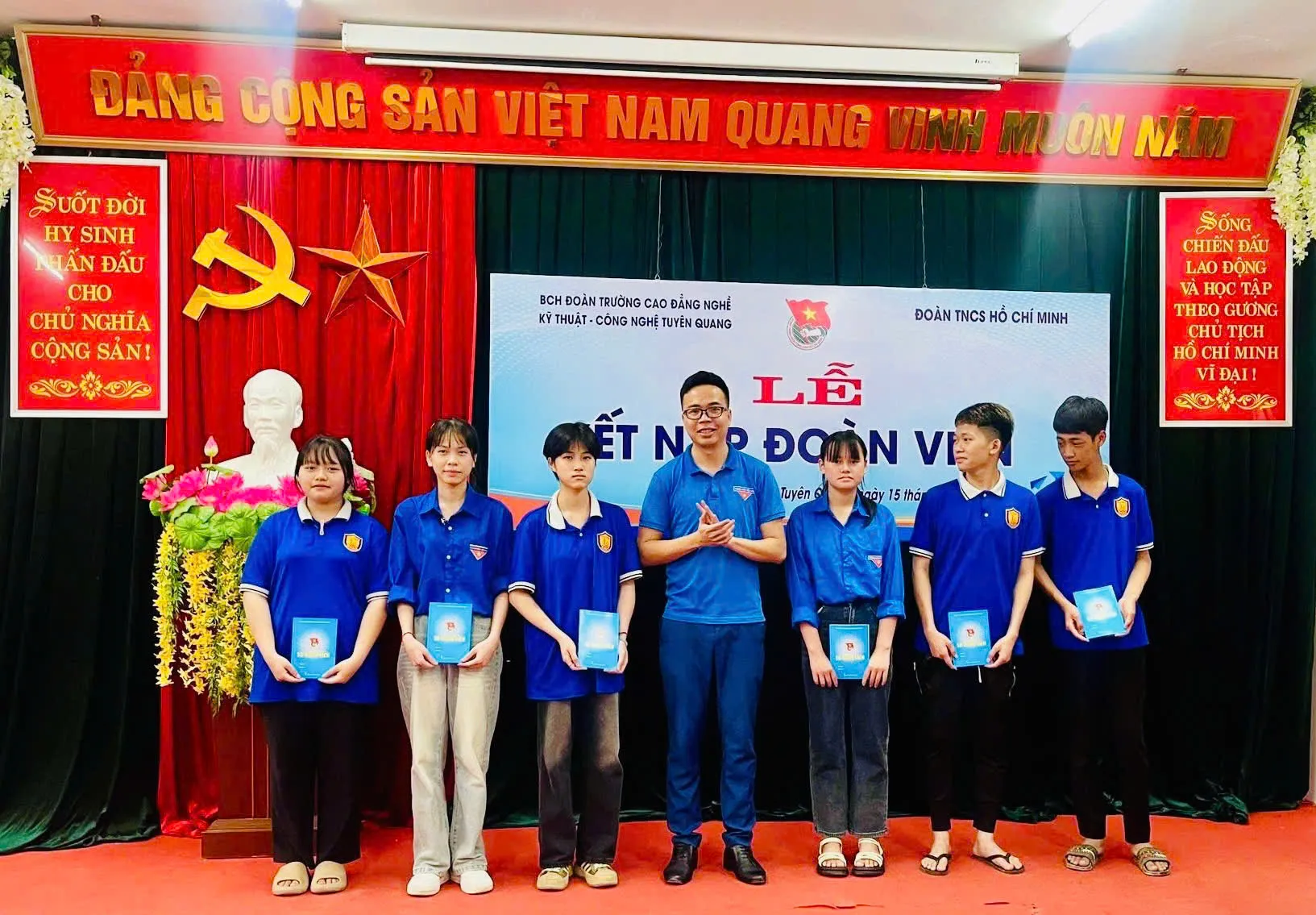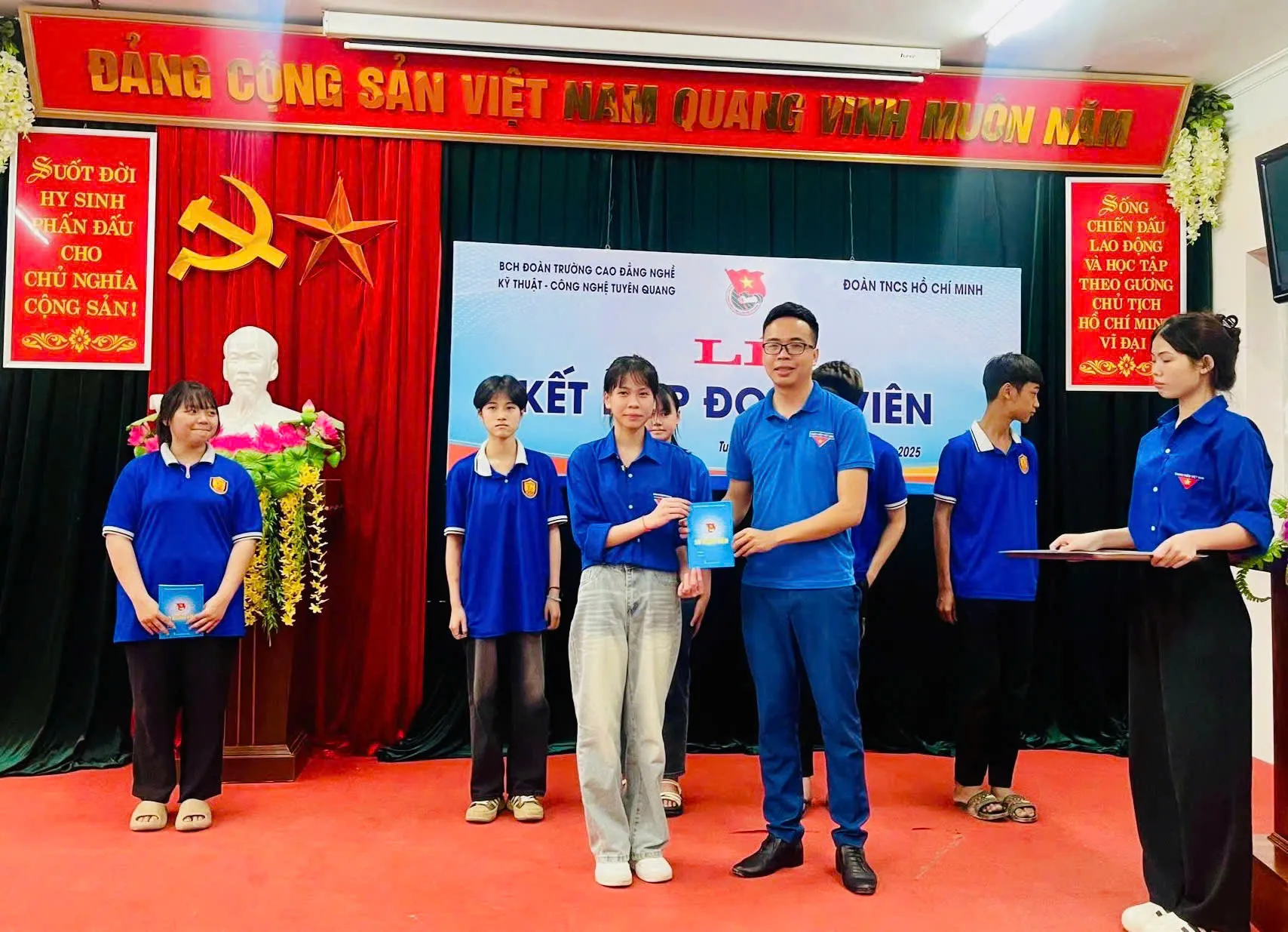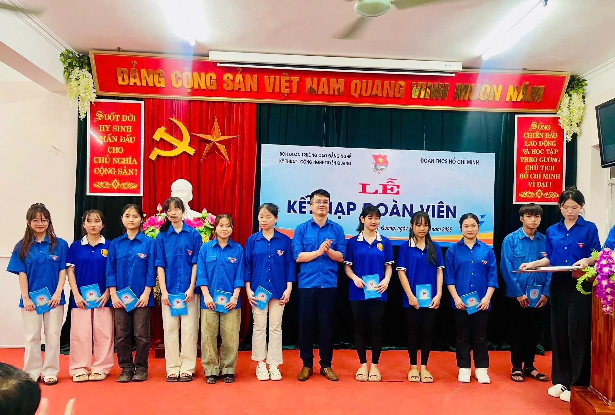 Sáng ngày 15/5/2025 Đoàn thanh niên cộng sản Hồ Chí Minh trường Cao đẳng nghề Kỹ thuật – Công nghệ Tuyên Quang tổ chức Lễ kết nạp Đoàn viên thanh niên cho 90 học sinh, sinh viên ưu tú của Nhà trường.
