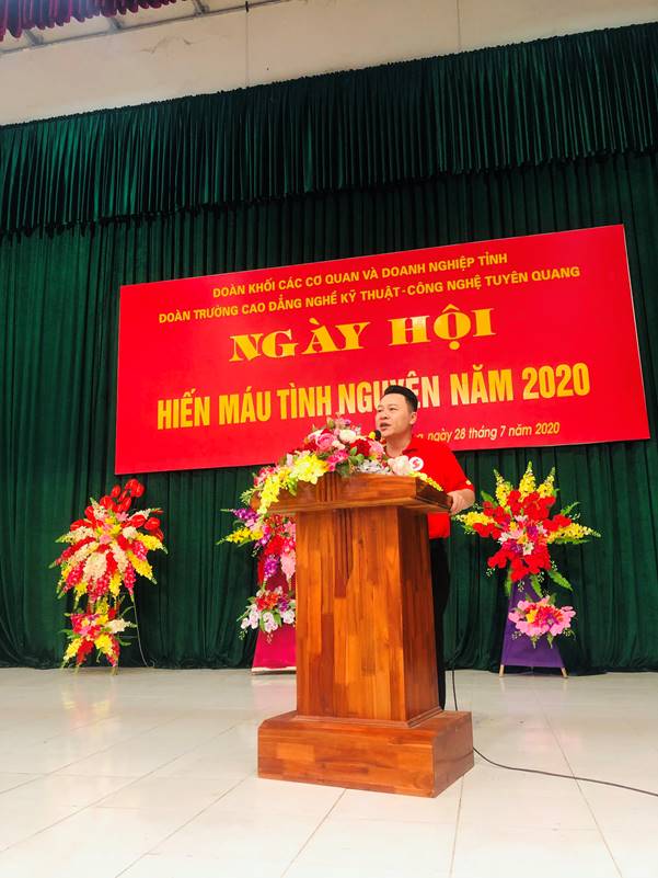 Ông Nguyễn Hoàng Long - Ủy viên ban chấp hành Trung ương Hội chữ thập đỏ Việt Nam, Chủ tịch Hội Chữ thập đỏ tỉnh Tuyên Quang, Phó trưởng ban thường trực Ban chỉ đạo vận động hiến máu tình nguyện tỉnh Tuyên Quang cho biết, trong nhiều năm qua, trường Cao đẳng nghề Kỹ thuật – Công nghệ Tuyên Quang luôn đồng hành, ủng hộ Hội Chữ thập đỏ tỉnh trong hoạt động hiến máu tình nguyện thông qua việc tổ chức nhiều ngày hội hiến máu, trao tặng hàng nghìn đơn vị máu cho bệnh nhân.