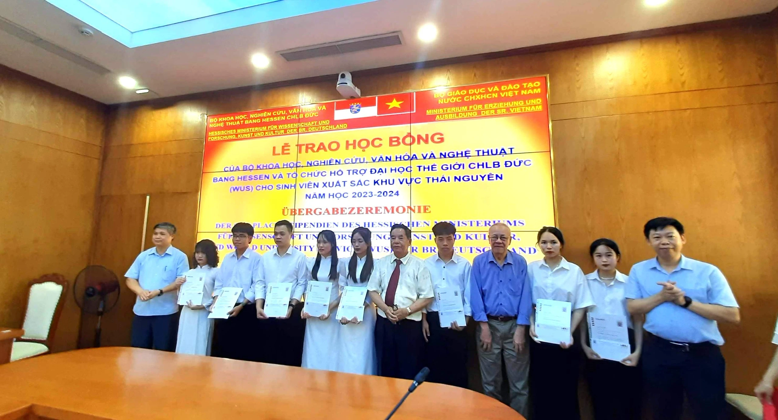 Chương trình Lễ trao học bổng Hessen năm học 2023-2024 được tổ chức tại Trường Đại học Thái Nguyên vào chiều ngày 16/4 do Qũy học bổng Hessen của Bộ khoa học, nghiên cứu, văn hóa và nghệ thuật bang Hessen và tổ chức hỗ trợ đại học thế giới Công hòa Liên bang Đức, Hội hữu nghị Việt Nam – Đức tổ chức giành cho các học sinh, sinh viên xuất sắc của Việt Nam thuộc các trường Đại học, Cao đẳng, Trung học chuyên nghiệp khu vực các tỉnh miền núi phía bắc.