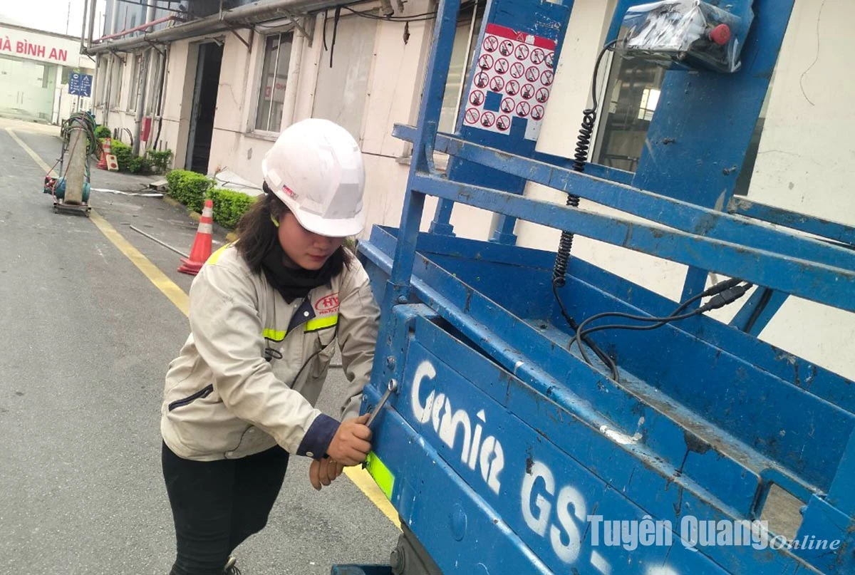 Chị Nguyễn Thị Thu Trang làm nghề sửa chữa ô tô, xe nâng.
