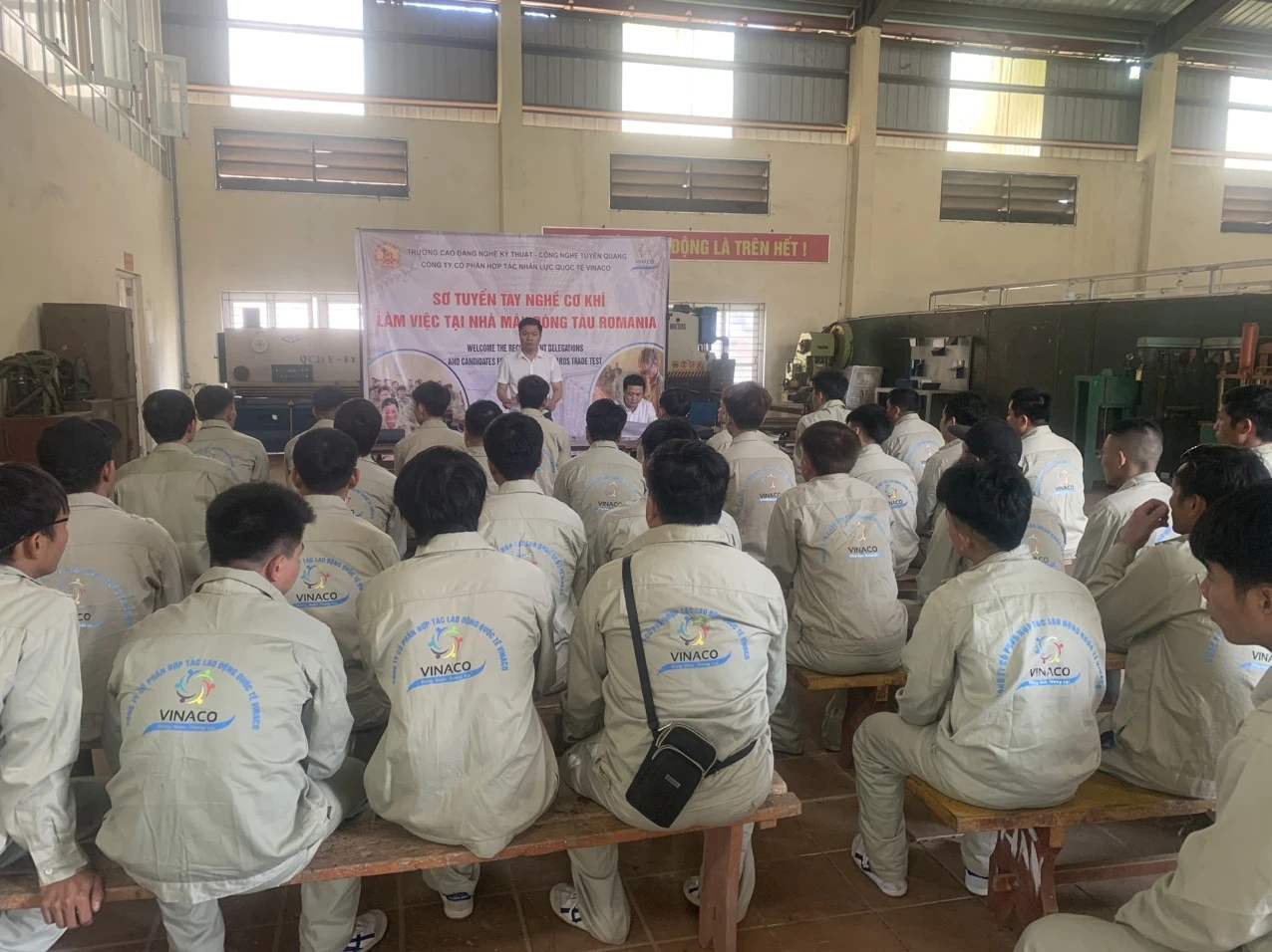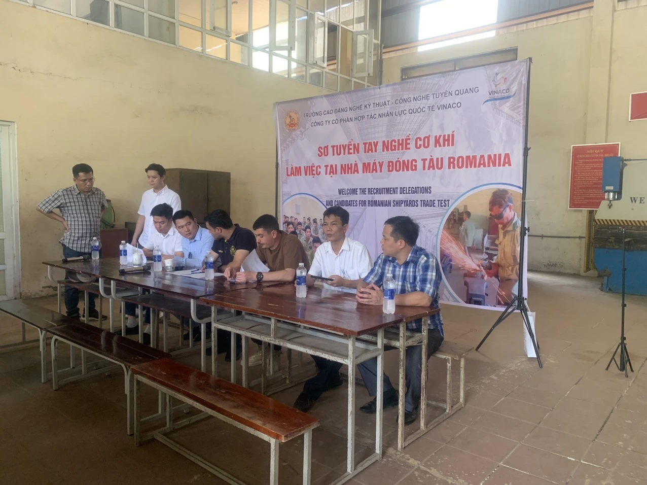Ngày 12/5/2024, Công ty Cổ phần hợp tác nhân lực quốc tế Vinaco phối hợp với Trường Cao đẳng nghề Kỹ thuật - Công nghệ Tuyên Quang tổ chức Sơ tuyển kỹ năng nghề cho 36 lao động để đi làm việc theo hợp đồng tại Nhà máy đóng tầu Vard, chi nhánh Romania (Châu Âu).