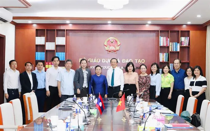 Chiều 24/6, tại Bộ Giáo dục và Đào tạo (GDĐT), Thứ trưởng thường trực Phạm Ngọc Thưởng làm việc với bà Khamphao Ernthavanh, đại sứ đặc mệnh toàn quyền Cộng hòa Dân chủ nhân dân Lào tại Việt Nam về hợp tác giáo dục và phát triển nguồn nhân lực Việt Nam – Lào.