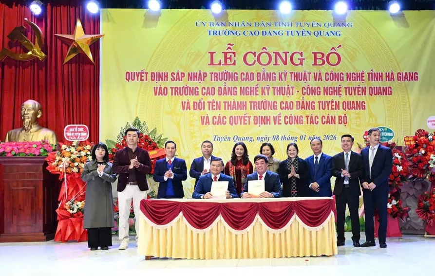 Sáp nhập cơ sở giáo dục nghề nghiệp: Lễ công bố quyết định sáp nhập trường Cao đẳng Kỹ thuật và Công nghệ tỉnh Hà Giang vào trường Cao đẳng nghề Kỹ thuật – Công nghệ Tuyên Quang và đổi tên thành Trường Cao đẳng Tuyên Quang; công bố các quyết định về công tác cán bộ.